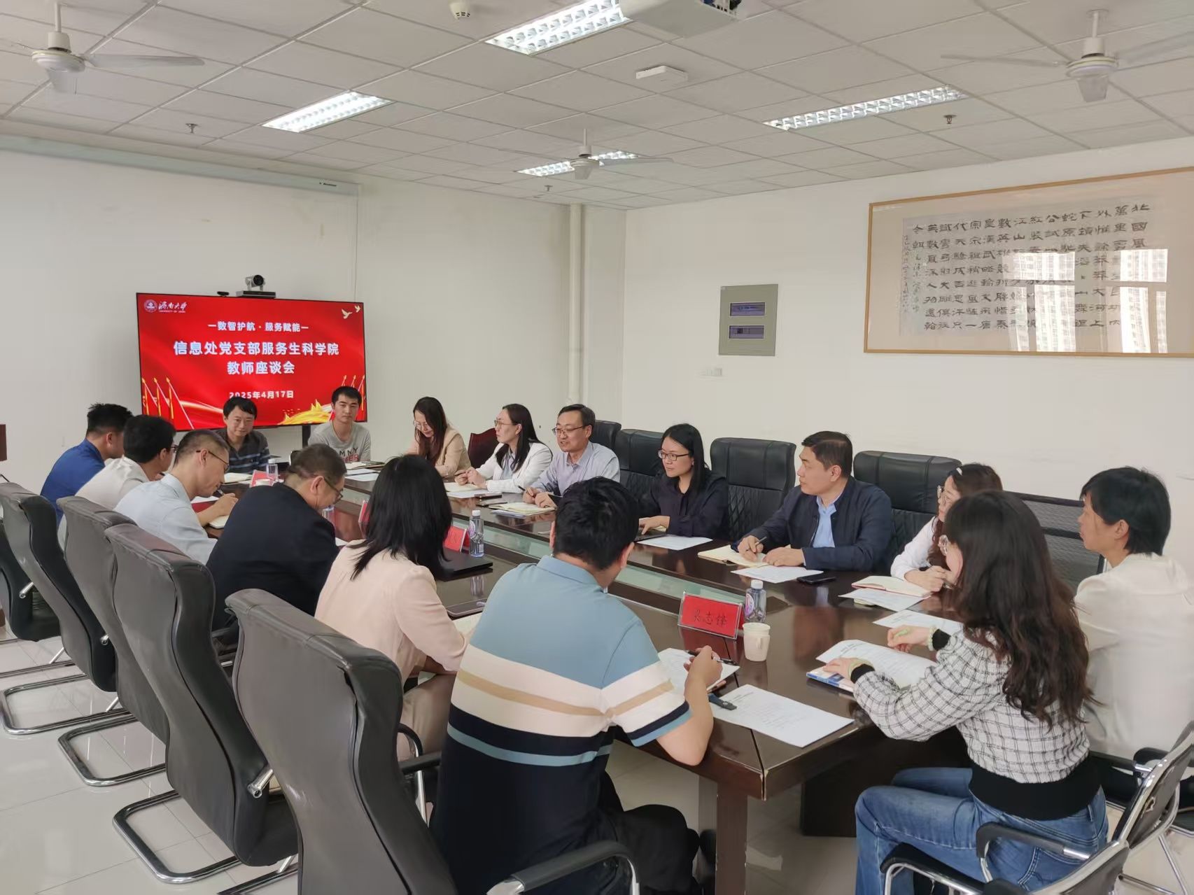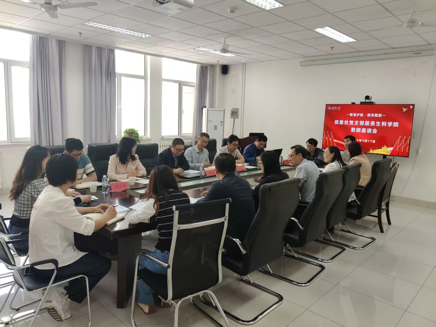 在座谈交流环节,双方就高性能计算平台使用效率提升、校园网络稳定性增强、信息化服务优化以及多媒体教学设备使用等问题展开热烈讨论。学院教师从教学与科研实际需求出发,就信息化建设和服务效能提升提出诸多意见和建议。针对提出的问题,信息管理处相关复杂同志均进行细致解答,提出切实可行的解决方案,展现出高效务实的工作作风。