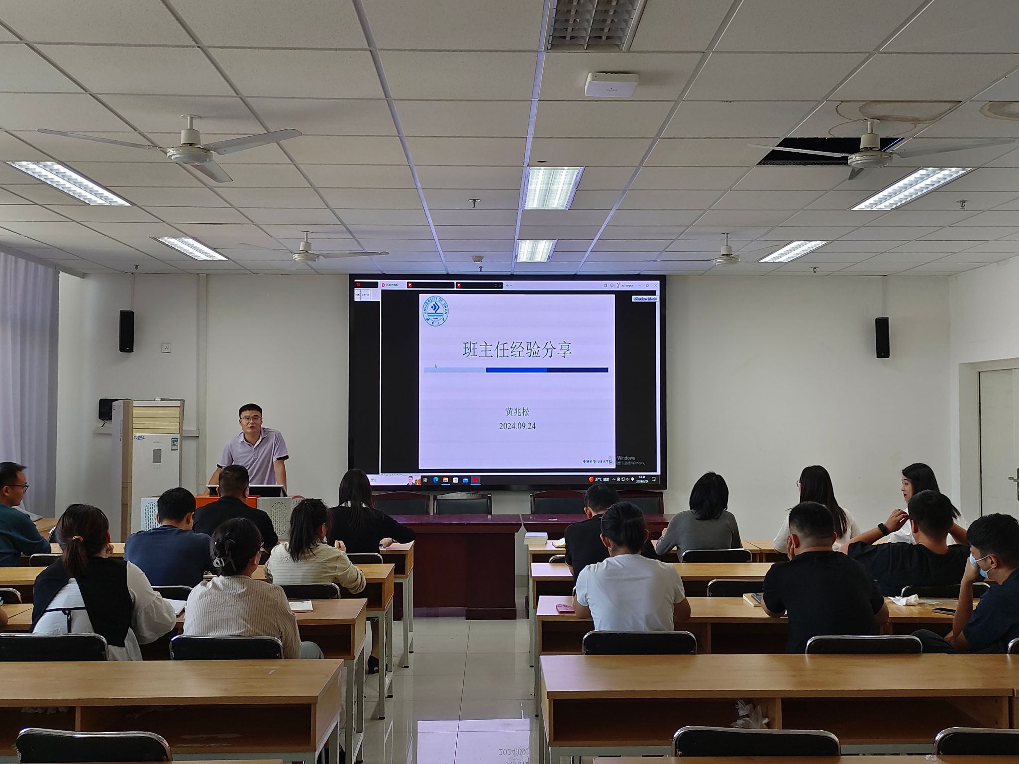 相关辅导员结合学校有关政策向班主任介绍近期学生评奖评优、资助管理、公寓管理、安全教育等方面工作的开展情况。班主任代表黄兆松结合自身工作实际,从班风学风建设、师生沟通交流、职业规划指导三个角度进行了经验分享,并就及时了解班级学生动态、加强学生干部队伍建设等问题提出了建议。