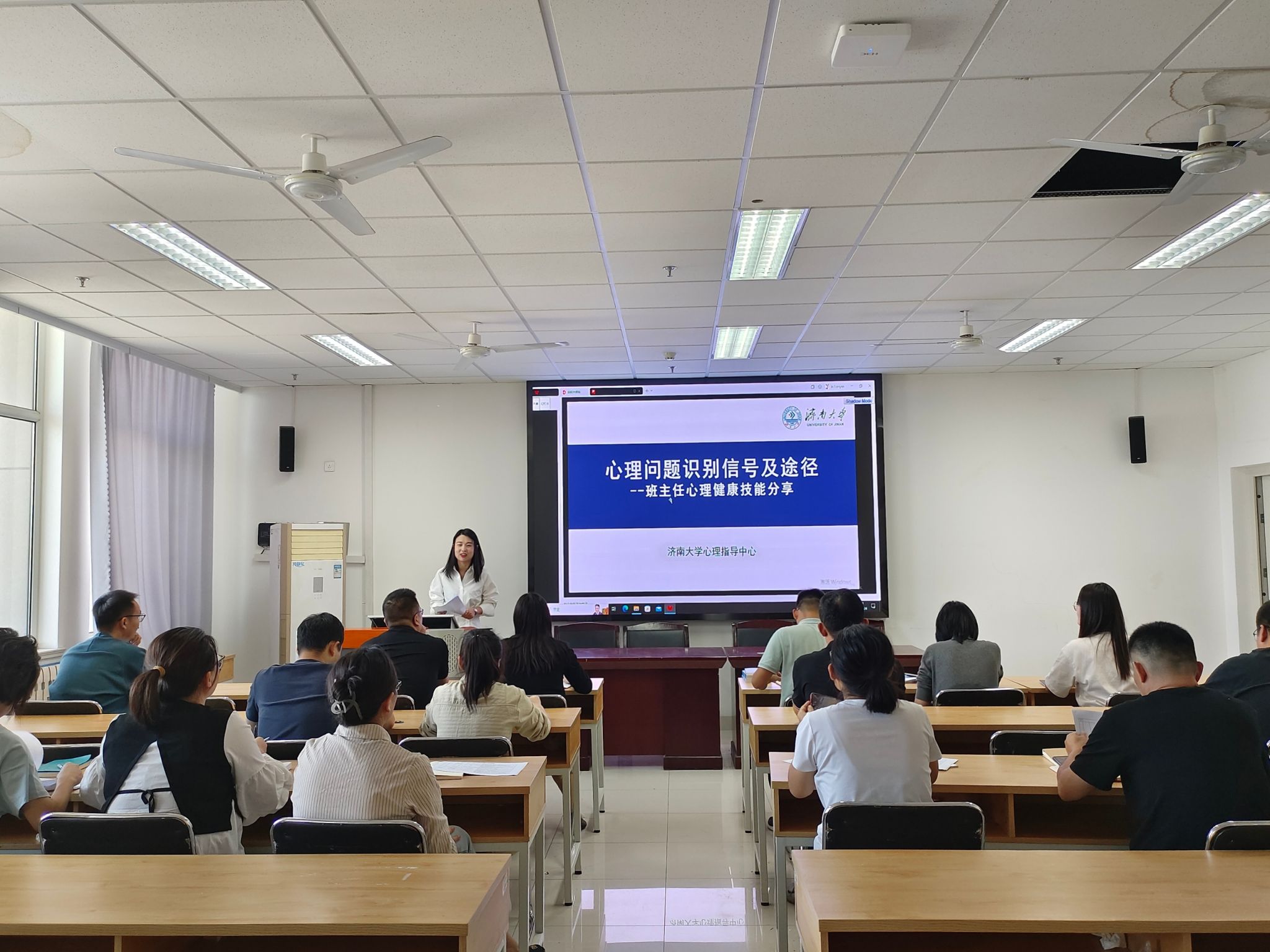 心理指导中心主任蔺琦琦作了题为《大学生心理问题识别信号及途径》的专题培训,从心理工作要点、重要节点工作开展、日常工作开展三个角度,介绍了做好大学生心理工作的技巧和要点,并结合具体案例,着重讲解了新生心理工作的整体要求和注意事项。