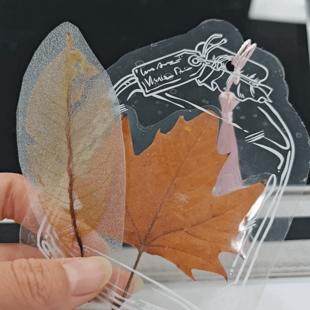 与此同时,树叶书签活动同样人气满满,同学们收集了大小在 10x10cm以内的树叶,带到活动地点进行封膜收藏。一份小小的树叶书签不仅仅是对秋天的珍贵留念,更是与大自然亲密接触的美好见证。