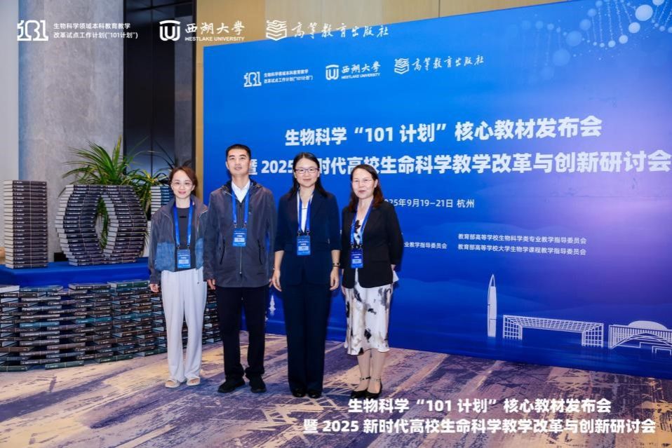 2025年9月19日至21日,生物科学“101计划”核心教材发布会暨2025新时代高校生命科学教学改革与创新研讨会在浙江杭州举行。本次会议由教育部生物科学“101计划”专家委员会,教育部高等学校生物科学类专业教学指导委员会,教育部高等学校生物技术、生物工程类专业教学指导委员会,教育部高等学校大学生物学课程教学指导委员会和高等教育出版社联合主办,西湖大学承办,是国内生命科学领域高等教育改革与教材建设的高端盛会。学院院长秦晓春、副院长樊祥宇、国家一流本科课程负责人李玉梅以及山东省青教赛一等奖获得者车彤彤参加了此次盛会。