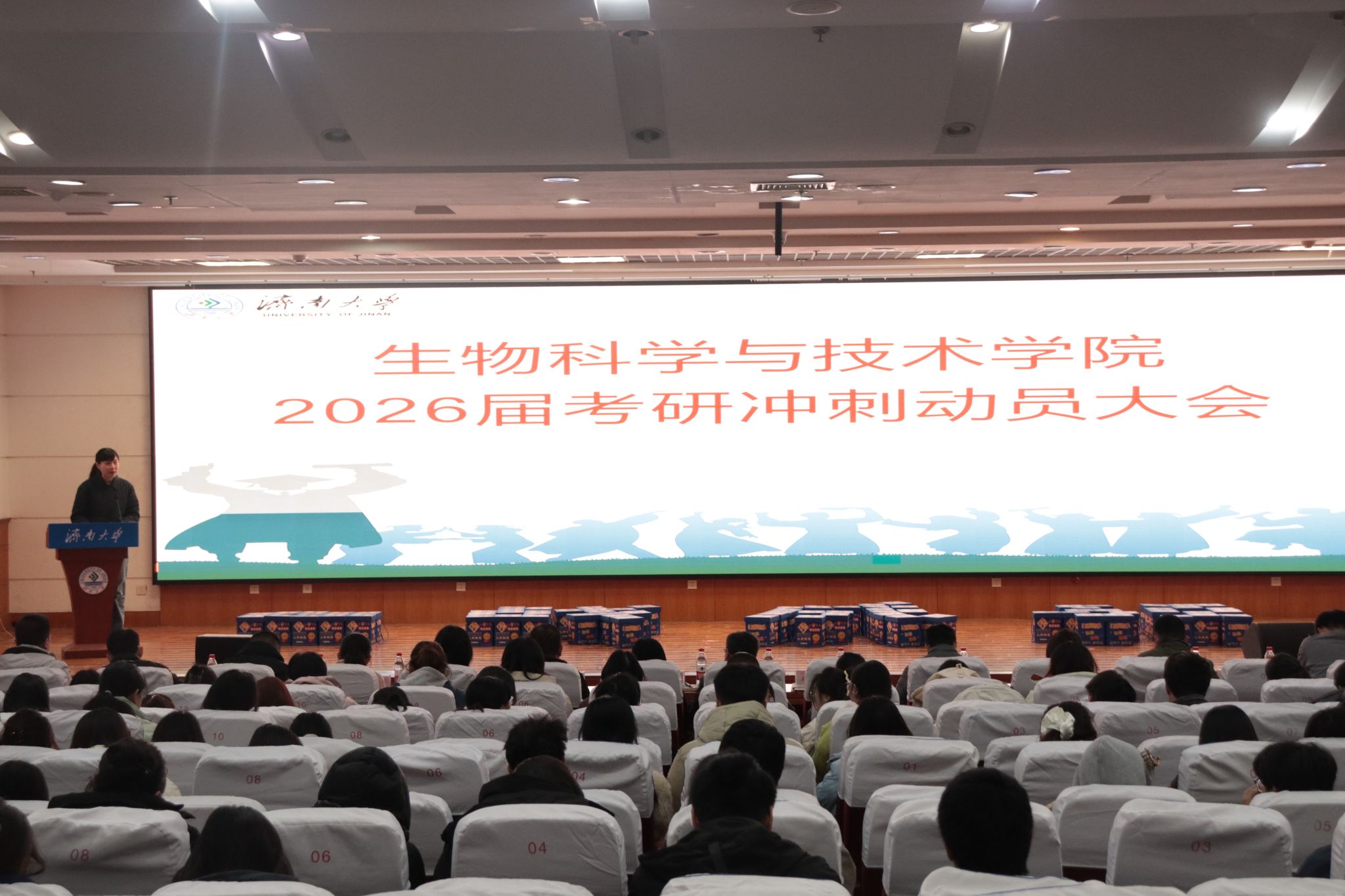 在第二学术报告厅隆重召开2026届考研冲刺动员大会。学院党委书记史国普,学工部(处)副部(处)长武芳,学院党委副书记、副院长杜艳,副院长李强、樊祥宇,各系系主任、辅导员、班主任、学业导师代表及全体2026届考研学生参加大会。会议由杜艳主持。