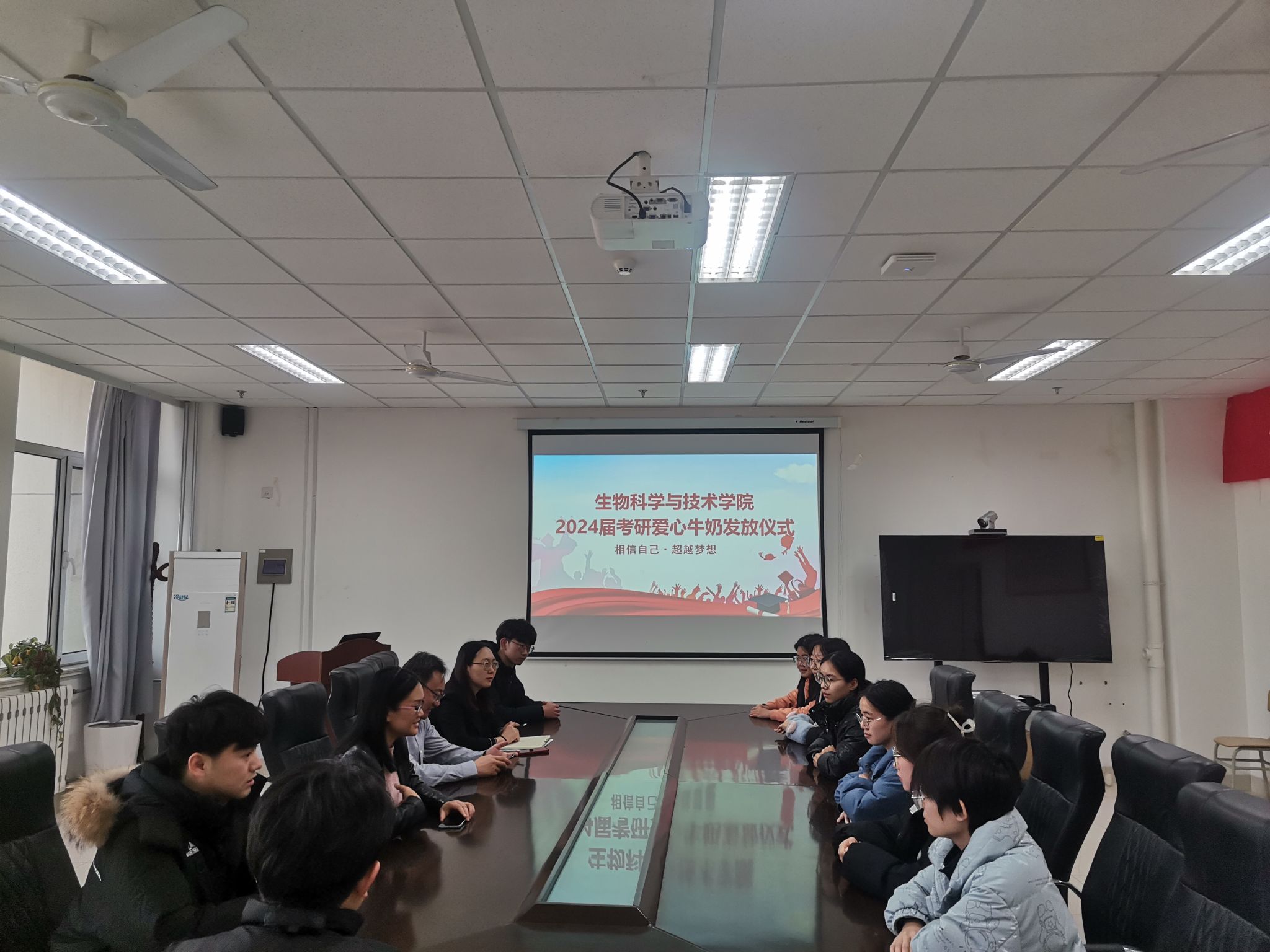 随后,与会领导和老师为考研学生发放了牛奶等慰问品,并就学生备考中遇到的问题做了沟通与指导。亲切的交流,温馨的祝福,承载了学院对考研学生最真挚的祝福和最美好的期许。同学们纷纷表示,感谢学院的暖心关怀,一定抓住最后的复习时间,全力以赴,努力拼搏,以最佳的状态迎接考试,争取佳绩,为学弟学妹树立榜样。