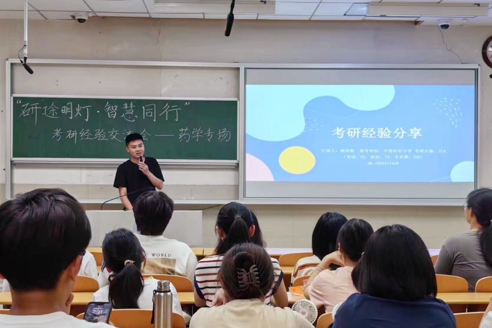 举办三场毕业生朋辈经验交流活动。邀请优秀毕业生代表分享学习经历、成长感悟,结合自身参加科创竞赛、考研等经历讲述如何做好大学生涯规划,为学弟学妹答疑解惑。这不仅是知识与经验的传递,更承载了生科学子对学院和学弟学妹的深厚情谊。