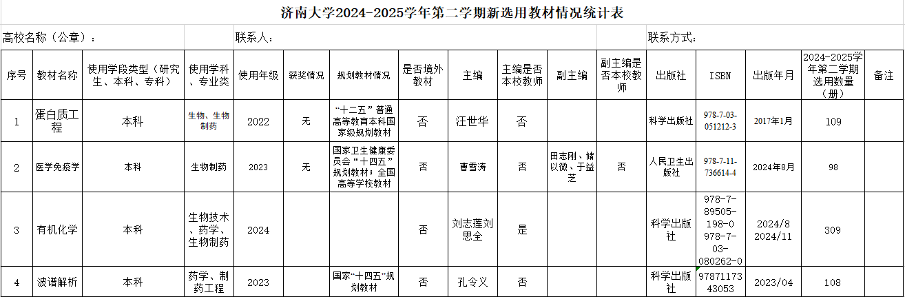 根据《普通高等学校教材管理办法》(教材〔2019〕3号)和《老王论坛 教材管理办法》(济大校字〔2021〕86号)文件精神,经学院教研室、系及学院教材工作领导小组审核,相关教材符合国家教材委员会及省教育厅相关文件要求,同意选用。