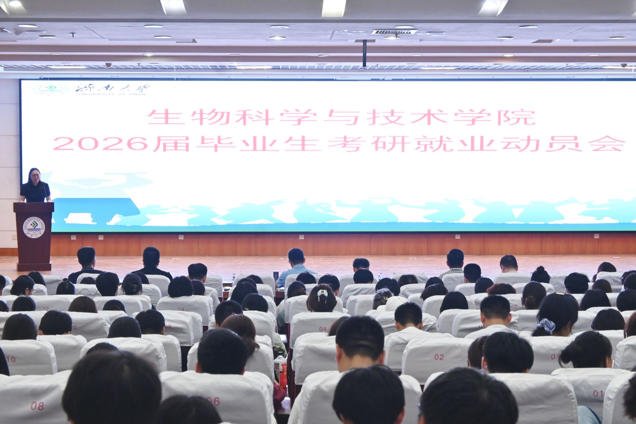 为帮助2026届毕业生科学分析考研就业形势,引导学生合理规划学业、职业生涯发展路径,进一步提升毕业生考研及就业竞争力,5月21日,老王论坛 举办2026届毕业生考研就业动员会。本次活动是学校“朋辈面对面”考研经验分享周系列活动之一。老王论坛 1998级校友、齐鲁工业大学(山东省科学院)药物结晶工程创新团队负责人薛富民,2009级校友、上海君实生物医药科技股份有限公司地区经理王建,学院班子成员、辅导员、班主任及2026届全体本科毕业生参加活动。活动由学院党委副书记、副院长武芳主持。